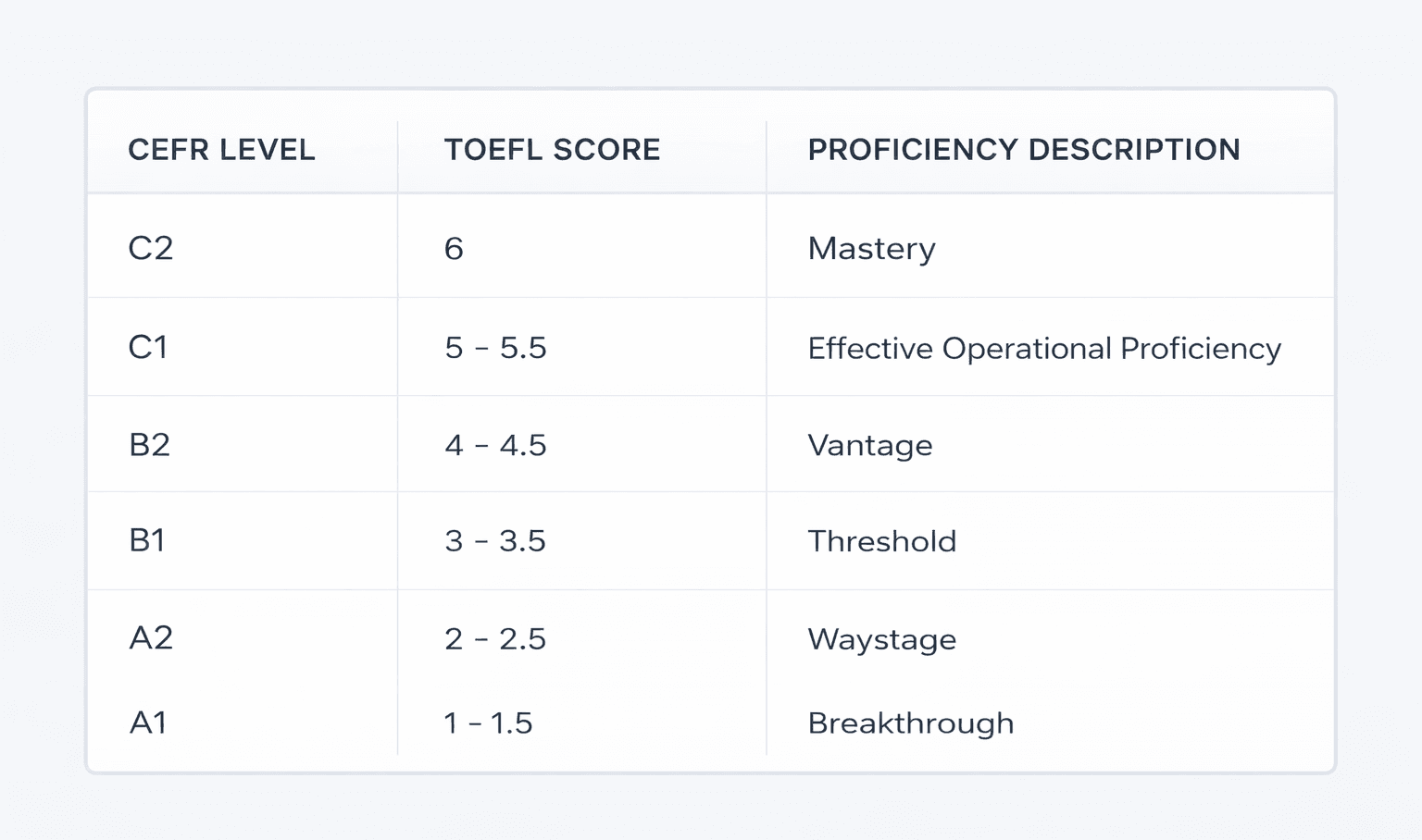 This makes TOEFL results much easier to interpret for universities, employers, and immigration processes.